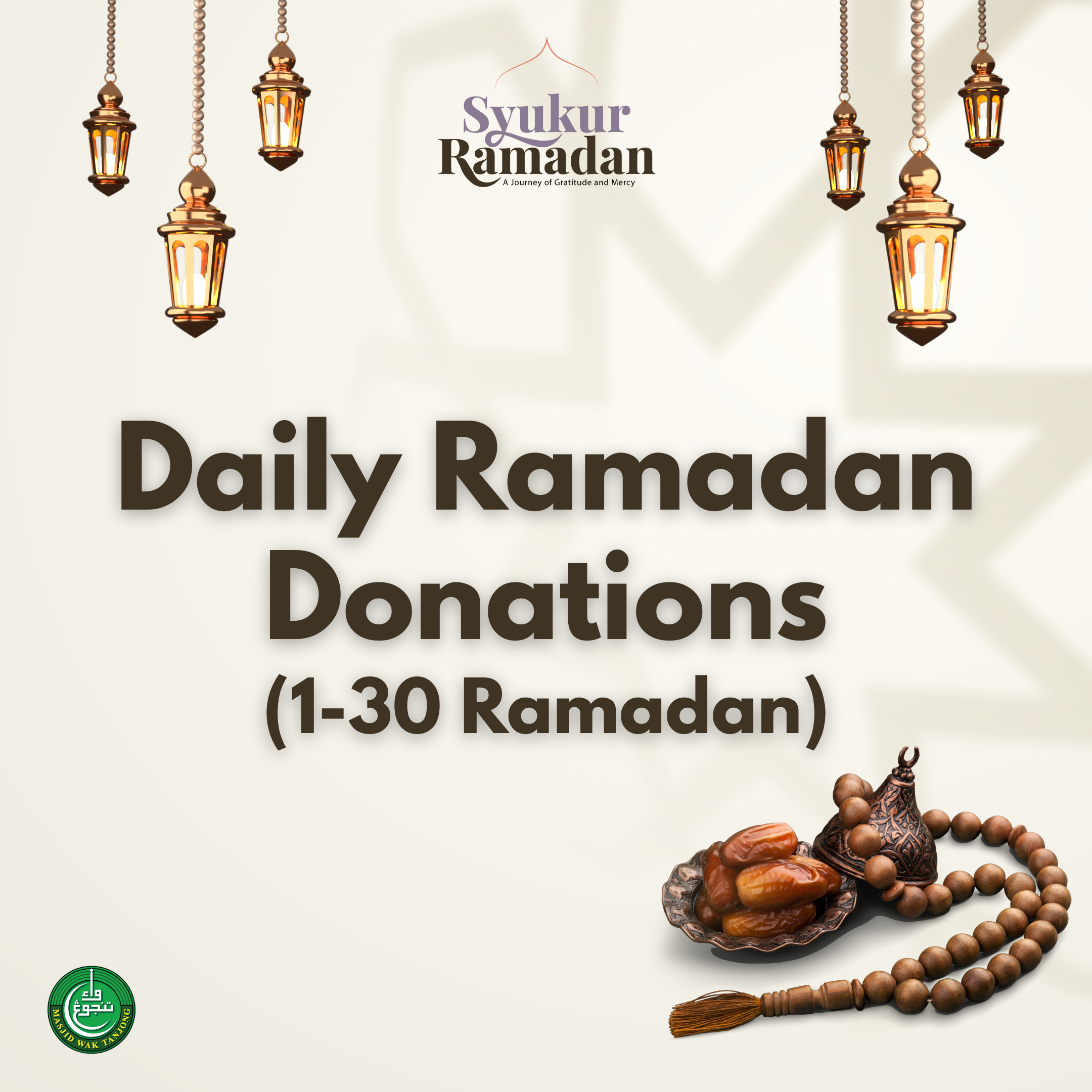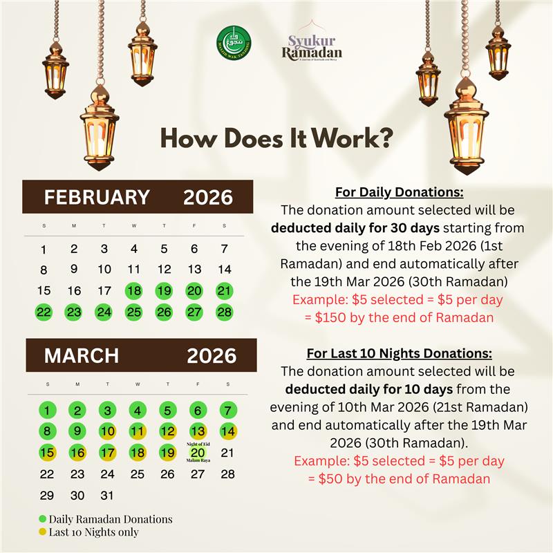 Would you love to donate to a good cause every day in Ramadan but afraid you might forget to do so? Automate your daily contributions in Ramadan with Masjid Wak Tanjong and gain spiritual rewards with every donation!