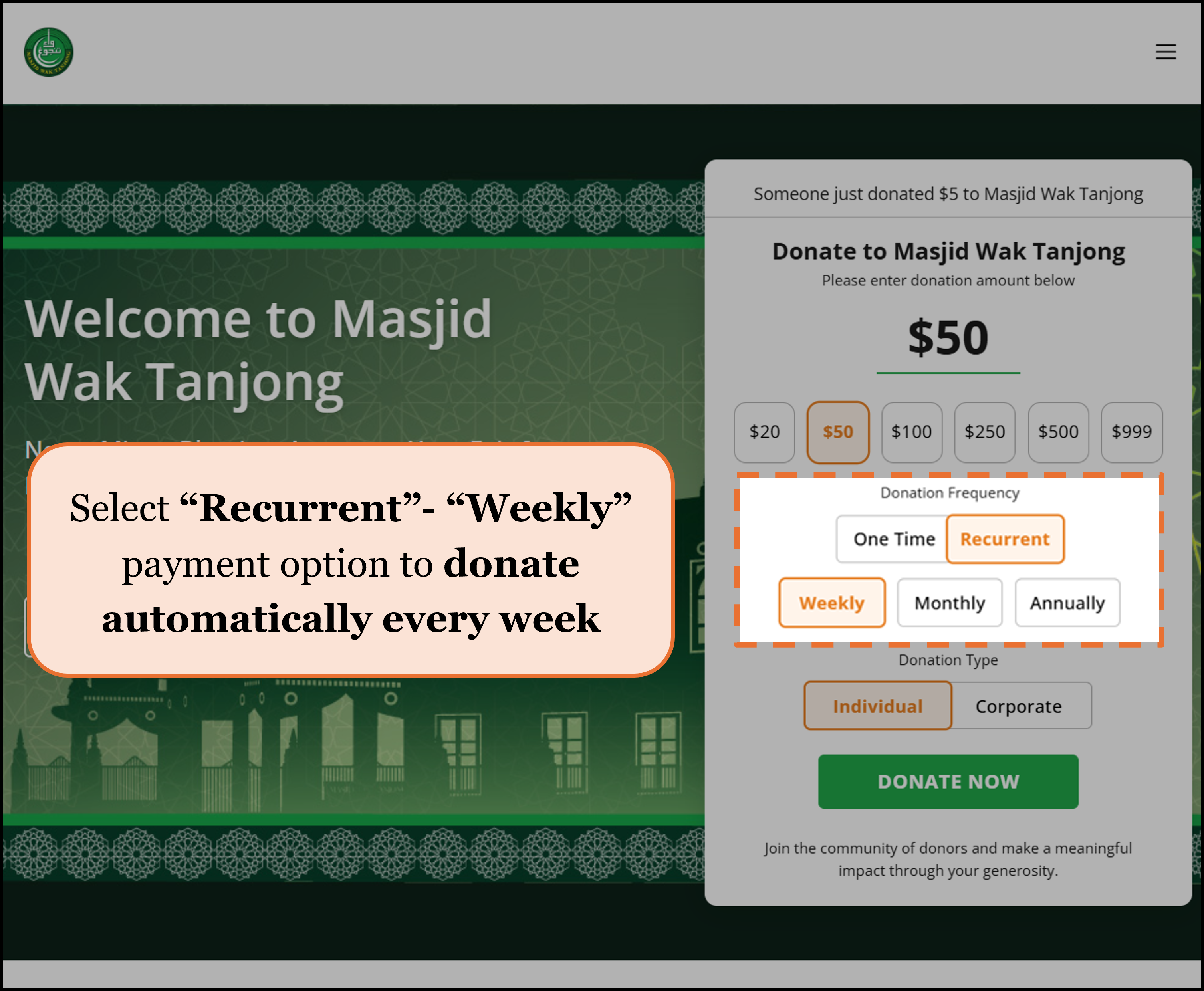 *Weekly Friday Donations are now hosted at https://www.waktanjong.org/ to ensure that more of your donation goes directly to the Masjid*